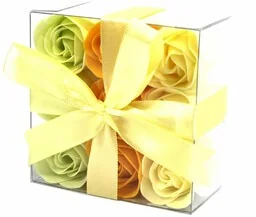 Zestaw 9 Mydlanych Kwiatów - Wiosenne Róże Wystarczy dodać jedną lub dwie róże do gorącej kąpieli, zrelaksować się i obserwować jak pięknie pachnace kwiaty rozpuszczają się przed Twoimi oczami. Mydlane kwiaty pozostawią Twoją skórę gładką, aksamitną i pachnącą. Składniki INCI: Zea Mays (Corn Starch), Polyvinyl Alcohol, Aqua, Sodium Dodecyl Sulphate, Cocamide DEA, Propylene Glycol, Paraffinum Liquidum, Parfum, Methylisothiazolinone, (+/- CI 16035, CI 19140, CI 42090, CI 18050, CI 16255, CI 45430, CI 15985) Wymiary 9x9x4 cm