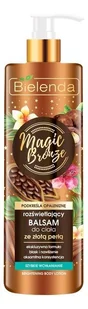 Linia produktów brązujących przywraca skórze równomierny zdrowy koloryt i słoneczny blask. Jest idealna dla skóry szarej, zmęczonej, trudno opalającej się i wrażliwej na słońce. Zawiera niezwykle efektywne połączenie składników brązujących i pielęgnujących, dzięki czemu nie wysusza skóry, nawilża ją, a jednocześnie zapewnia promienną i muśniętą słońcem skórę przez cały rok. ROZŚWIETLAJĄCY BALSAM do ciała, pozwala jednym muśnięciem ręki podkreślić efekt naturalnej opalenizny, przy jednoczesnej pielęgnacji skóry i jej rozświetleniu. Aksamitna formuła balsamu idealnie rozprowadza się po skórze, pozwalając na dokładną i równomierną aplikację, nadając ciału pięknego subtelnego blasku.