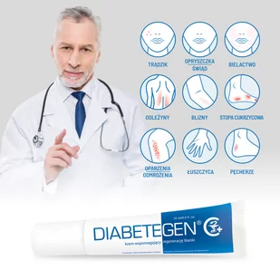 Diabetegen regeneracja skóry problematycznej, osłabionej, skłonnej do zranień. Krem z colostrum - bardzo silnie działającą substancją pobudzającą organizm do autoregeneracji i poprawy naturalnej odporności. Krem przebadany dermatologicznie.