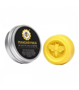 Balsam do ciała w kostce, MANDARYNKA, z woskiem pszczelim, 40g, Miodowa Mydlarnia Cudownie lekki balsam emolientowy, w formulacji bezwodnej, bogaty w składniki odżywcze i regenerujące, które pomagają utrzymać optymalny stopień nawilżenia i natłuszczenia skóry. Otula ciało ciepłym, słonecznym, radosnym zapachem czerwonych mandarynek. Podczas opracowywania receptury tego balsamu, głównym konceptem i celem była RÓWNOWAGA. Zadbano to, by uzyskać następujące cechy i właściwości: Balsam odżywia, regeneruje i natłuszcza skórę, lecz jednocześnie szybko się wchłania, nie pozostawiając tłustej warstwy na skórze, a jedynie leciutki, jedwabisty w dotyku film ochronny – tak nieodzowny w przypadku skóry podrażnionej, suchej, nadmiernie napiętej.