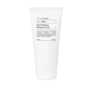 Odkryj rozświetlający balsam do ciała Your KAYA!Wegański balsam do ciała zapewnia uczucie nawilżenia i pielęgnuje skórę, a także subtelnie wygładza, czyniąc ją promienną i wyrównując jej koloryt. Właściwości produktu: Zawiera aż 97% składników pochodzenia naturalnego i 7 składników aktywnych. Balsam rozświetla skórę całego ciała i wyrównuje jej koloryt. A to dzięki etycznie pozyskiwanej mice – minerałowi, który nadaje naturalny, subtelny połysk.