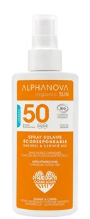 Alphanova Sun Bio SPF50 - spray do opalaniaSpray Alphanova Sun posiada filtr przeciwsłoneczny SPF 50oraz certyfikat organiczny i wegański. Jest bez parabenów, tlenku cynku oraz chemicznych konserwantów. Posiada lekką i nieklejąca konsystencję oraz jestwodoodporny. Został wzbogaconyorganicznym aloesemoraz nawilżającymi, kojącymi i niekomodogennymiolejkami jojoba i tamanu. Pachnie Monoï i zapewnia natychmiastową ochronę.
