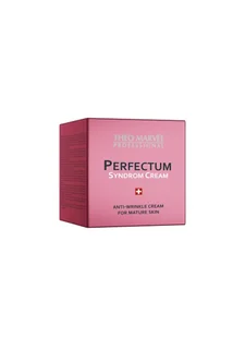 PERFECTUM Kompleksowa terapia przeciwzmarszczkowa i regenerująca dla kobiet w okresie menopauzalnym oparta na fitoestrogenach z komórek soi, „roślinnym progesteronie” z pochrzynu włochatego, kompleksie Juveleven, który aktywuje białka FOxO oraz „krystalicznych łzach” wpływających na ekspresję genów. SYNDROM CREAM 50 ml. Wysoce innowacyjny krem o działaniu przeciwzmarszczkowym reaktywujący mechanizmy w skórze w trakcie menopauzy: koryguje wiotczenie skóry, zwiększa gęstość i sprężystość skóry oraz uzupełnia warstwę lipidową . Posiada filtr SPF20.