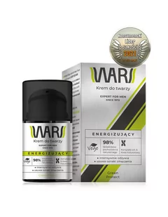 Wars Krem do Twarzy Green Protect Men Energizujący 50 ml Pobudzający krem do twarzy z kompleksem witamin i minerałów o działaniu energetyzującym. Kwas hialuronowy i olej makadamia zapewniają silne nawilżenie, redukują oznaki zmęczenia, nadając skórze zdrowy wygląd. Lekka formuła szybko się wchłania, nie pozostawiając uczucia lepkości na skórze. Kompleks wit.