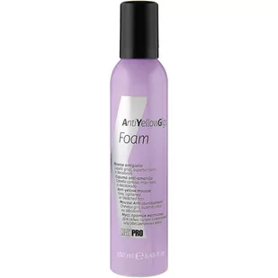 KayPro No Yellow Gigs – pianka do włosów blond, 250ml Pojemność (ml): 250 KayPro No Yellow Gigs to profesjonalna pianka do pielęgnacji włosów blond, rozjaśnianych oraz siwych. Idealna dla osób poszukujących produktu, który pozwoli utrzymać chłodną tonację koloru, jednocześnie zapobiegając pojawianiu się żółtych tonów. Pianka KayPro No Yellow Gigs to ekspert w dziedzinie pielęgnacji włosów blond. Formuła produktu, zawierająca fioletowe pigmenty, skutecznie neutralizuje żółte tony i przeciwdziała ich powstawaniu.