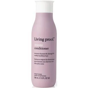 Odżywka do włosów zniszczonych Living Proof Restore Conditioner Dry/Damaged Hair 236ml. Restore Conditioner to nawilżająca odżywka do włosów suchych i zniszczonych. Podobnie jak szampon Restore, odżywka również zawiera Restoritive Shield, który sprawia, że włosy po umyciu wyglądają tak, jakby nigdy nie były zniszczone. Kondycja włosów ulega widocznej poprawie, a równowaga nawilżenia zostaje przywrócona. Ponieważ odżywka odpycha brud i olej, włosy pozostają dłużej czyste i wymagają rzadszego mycia.