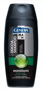 Genera Man 2w1 Rigenerante Szampon i Żel pod Prysznic 300ml Regenerujący szampon i żel pod prysznic w jednym. Jego formuła została wzbogacona o sól morską i mentol. Ciało i włosy są jednocześnie oczyszczone i nawilżone. Dzięki dodatkowi mentolu zapewnia natychmiastowe orzeźwienie. Daje niezwykle przyjemne uczucie chłodu i świeżości.
