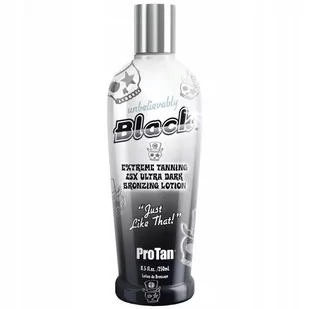 ProTan Unbelievably Black 250ml Bronzer. Ekstremalnie opalający 25-krotnie ultra ciemny brązujący balsam. Ten balsam pozwoli Ci odzyskać wiarę w moc intensywnych i długotrwałych efektów! Wyjątkowo skuteczne połączenie przyspieszaczy opalania z ciemnymi bronzerami i szczyptą DHA pozwoli Ci odkryć niespotykane dotąd złociste tony opalenizny. Naturalne, egzotyczne ekstrakty, aloes i magiczne silikony zapewniają doskonałe właściwości kondycjonujące, dzięki którym skóra stanie się zdrowa i promienna. Formuła bez parabenów zapewni wspaniały, głęboki, długotrwały i najciemniejszy kolor brązu, jaki tylko możesz sobie wyobrazić.