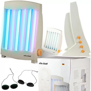 Producent dołącza do solarium także okulary ochronne na oczy, bo odpowiedzialne opalanie to opalanie bezpieczne. Nie odmawiaj sobie złocistego odcienia skóry przez cały rok- niech promieniuje swoim pięknym blaskiem przez 365 dni! Wersja CN - z lampami kolagenowymi Solaria do twarzy 836 CN mają świetlówki UVA-Colour, połowa świetlówek ma niebieską barwę światła, a połowa świetlówek ma różową barwę światła. Świetlówki te, oprócz opalania skóry swoim światłem, pozytywnie wpływają na ciało i zdrowie. Niebieska = relaksacyjna, ma pozytywny wpływ na ciśnienie krwi i puls, stymuluje wchłanianie tlenu i obniża stres. Różowa = pobudzająca, ma pozytywny wpływ na układ odpornościowy i dodaje pozytywnej energii Kupujesz od firmy TEAM POLSKA - głównego dystrybutora marki efbe-Schott na polskim rynku.