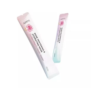 Odżywcza maseczka w saszetkach APPTI ROSE WHITENING&HYDRATING MASK TRANSPARET HYDRATING POWDER Różana maseczka do twarzy w saszetkach, która zapewnia głównie nawilżenie. Doskonale nada się do każdego typu cery. Zawartość saszetki po wymieszaniu z odpowiednią ilością wody przymnie formę żelu. Taka pojemność saszetki idealnie starczy na pokrycie całej twarzy. Kluczowe cechy maseczki: