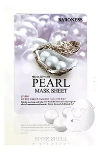 Pearl Sheet Mask marki BARONESS. Maska w płacie. Doskonale dopasowuje się kształtu twarzy. Nasączona została po brzegi dobroczynnym ekstraktem z pereł, który doskonale rozświetla skórę, przywraca jej naturalny blask oraz wspomaga walkę z niedoskonałościami. Dodatkowo sprawia, że cera jest bardziej elastyczna, nabiera świeżego i zadbanego wyglądu.