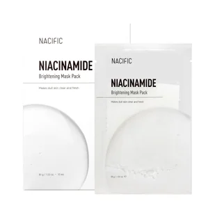 NACIFIC Niacinamide Brightening Mask to profesjonalna maseczka w płachcie, zaprojektowana jako szybki krok rewitalizacji skóry, która potrzebuje natychmiastowego rozświetlenia, nawilżenia i wygładzenia tekstury. Zestaw zawiera 10 sztuk, dzięki czemu staje się doskonałym wsparciem rutyny pielęgnacyjnej — szczególnie w momentach, gdy skóra wygląda na zmęczoną, szarą lub pozbawioną blasku. Formuła została opracowana z myślą o dostarczeniu wysokiej dawki składników aktywnych — w tym niacynamidu w stężeniu 2% lub więcej i witaminy C, wspierającym rozjaśnianie skóry, oraz kwasu hialuronowego dla natychmiastowego nawilżenia. Płachta maski wykonana z celulozy pochodzenia bambusowego — co zapewnia doskonałe przyleganie do skóry, równomierne uwalnianie esencji i maksymalną skuteczność aplikacji. Kluczowa formuła: