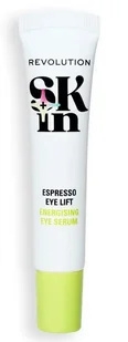 Revolution Skin Espresso Eye Lift Energetyzujące Serum pod Oczy 15mlCodzienny zastrzyk kofeiny dla Twoich oczu. To ultra-odświeżające serum z chłodzącym aplikatorem w kulce pomaga zredukować cienie pod oczami, opuchliznę i widocznie rozjaśnić obszar pod oczami, zapewniając wypoczęty, zrewitalizowany wygląd. Udowodniono klinicznie, że widocznie redukuje cienie, opuchliznę i podkrążone oczy w zaledwie 7 dni. W swojej formule zawiera 5% kofeiny i kwas hialuronowy. Wygładza i nawilża skórę pod oczami, nadając jej zdrowszy i jaśniejszy wygląd.