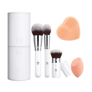 WYSOKA JAKOŚĆ – zestaw akcesoriów do makijażu, które zaspokoją potrzeby nawet najbardziej wymagających miłośników sztuki makijażu WEGAŃSKIE WŁOSIE – najwyższej jakości ręcznie formowane, syntetyczne włosie taklon ułatwia aplikację kosmetyków KOLOR & DESIGN – sprawiają, że akcesoria mają niezwykły wygląd, który wyróżnia się na tle innych produktów tego typu. GĄBKA DO MAKIJAŻU ułatwia równomierną aplikację podkładu, korektora i pudru TUBA NA PĘDZLE – umożliwia bezpieczne przechowywanie akcesoriów w domu i w podróży