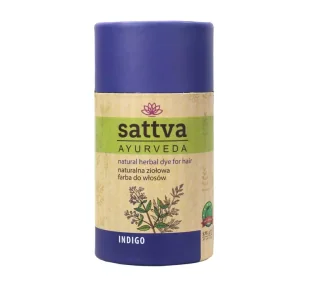 Produkt może być stosowany przez kobiety w ciąży. UWAGA: Kolor dojrzewa przez 48 godzin, zatem ostateczny kolor użycia henny uzyskasz po upływie 48 godzin od jej nałożenia. Do tego czasu nie myj włosów szamponem. Sattva naturalna ziołowa farba do włosów - Indigo 150 g Opakowanie zawiera 100% sproszkowanych liści rośliny o nazwie Indigofera Tinctoria Indygowiec barwierski.