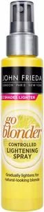 Rozjaśnij swoje blond włosy o 2 tony. Wyjątkowa formuła wzbogacona o ekstrakty z cytrusów i rumianek uaktywnia się przy zastosowaniu produktu ze źródłem ciepła (suszarka, prostownica) i stopniowo rozjaśnia włosy już po 3. do 5. użyciach.