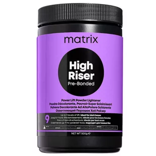 Po użyciu włosy stają się lśniące i pełne blasku. Puder rozjaśniający włosy Matrix High Riser: Wysoka Moc Rozjaśniania: Matrix High Riser BOND pozwala na rozjaśnienie włosów aż do 9 tonów, efektywnie działając nawet na ciemnych bazach. Ochrona Włókna Włosa: