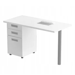 Stolik kosmetyczny do manicure jest łatwy w montażu i użytkowaniu. Wystarczy umieścić go w dogodnym miejscu w salonie kosmetycznym lub w domu, a następnie zorganizować przechowywanie akcesoriów w szufladach i szafce uchylnej. Regularne czyszczenie powierzchni płyty laminowanej zapewni długotrwały, estetyczny wygląd.