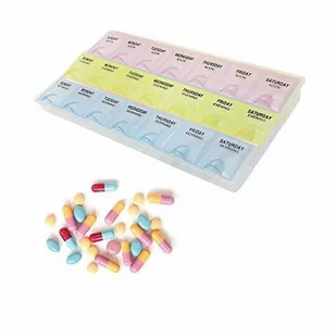Praktyczny pojemnik, kasetka na leki. Organizer umożliwia wygodne rozłożenie lekarstw na każdy dzień tygodnia oraz każdą porę dnia w obrębie 7 najbliższych dni. Niezwykle łatwy w użytkowaniu (wystarczy umieścić tabletki pod odpowiednią klapką) i ułatwiający pobieranie leków przez osoby starsze i mające kłopoty z pamięcią. Wykonany z bezpiecznego tworzywa sztucznego, które nie wchodzi w kontakt z lekami.