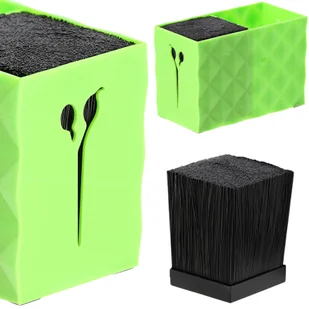 Atutem tego produktu jest to, że można włożyć nożyczki w każde miejsce w doniczce dzięki nylonowym włosom, które nie niszczą ramy nożyczek.