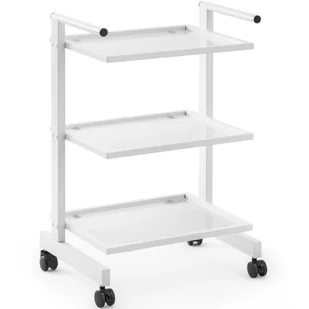 Wózek kosmetyczny oferuje mnóstwo miejsca do przechowywania dzięki 3 szklanym półkom i wytrzymuje obciążenie do 60 kg. Solidna stalowa rama z praktycznymi uchwytami do pchania oraz gładkie szklane półki są szybkie i łatwe do czyszczenia.