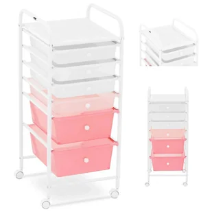 Kolorystyka wózka kosmetycznego z szufladami nie tylko prezentuje się atrakcyjnie, ale także pomaga uporządkować przybory do pracy. Pomocnik kosmetyczny przesuwaj dokładnie tam, gdzie go potrzebujesz za pomocą dwóch uchwytów. Dzięki kompaktowej konstrukcji z łatwością ustawisz wózek łazienkowy obok łóżka kosmetycznego lub fotela fryzjerskiego. Użyj górnej półki, aby na chwilę odłożyć urządzenia podczas zabiegu lub przechowywać je pod ręką. Dzięki solidnej konstrukcji wykonanej z chromowanej stali pomocnik kosmetyczny wspiera Cię w każdej chwili podczas pracy.