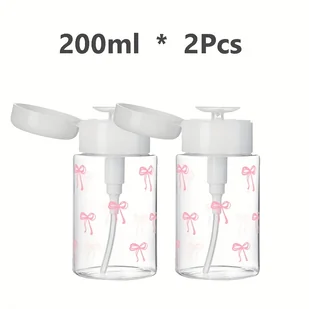 TEMU 2 szt., Urocze Przezroczyste Butelki Podróżne z Nadrukiem Kokardy Pojemności 3.38oz/6.76oz z Pompką, Idealne do Zmywacza do Paznokci, Toniku i