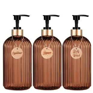 TEMU Zestaw 3 dozowników do mydła w łazience na szampon, odżywkę i mydło do kąpieli, niezbędne akcesoria do pokoi gościnnych.