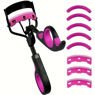 TEMU 9-częściowy zestaw - zalotka do rzęs i grzebień do podkręcania, 5 wymiennych wkładów, 3 grzebienie, podkręca i unosi rzęsy w 10 sekund.