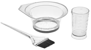 Akrylowy pędzel o szerokości 5 cm zapewniający równomierne rozprowadzanie koloru. Menzurka do precyzyjnego odmierzania składników. Wykonane z trwałego tworzywa sztucznego, odpornego na uszkodzenia. Sposób użyciaAby uzyskać najlepsze rezultaty, postępuj zgodnie z poniższymi krokami: Wlej odpowiednią ilość farby i oksydantu do miseczki, korzystając z menzurki do precyzyjnego odmierzania.