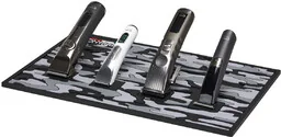 Antypoślizgowa struktura maty zapobiega przesuwaniu się nożyczek, brzytew i grzebieni, minimalizując ryzyko uszkodzeń. Jest łatwa do czyszczenia - wystarczy przetrzeć ją wilgotną szmatką lub umyć pod bieżącą wodą. Największym atutem tej maty są 4 wbudowane magnesy, które umożliwiają bezpieczne odkładanie metalowych narzędzi, takich jak maszynki do strzyżenia czy nożyczki, podczas pracy. Magnesy utrzymują narzędzia w jednym miejscu, zapewniając łatwy dostęp i zapobiegając ich przypadkowemu przesunięciu czy upadkowi. Mata jest elastyczna, miękka i łatwo wraca do swojego pierwotnego kształtu. Dzięki silnej przyczepności i antypoślizgowej fakturze, mata gwarantuje bezpieczeństwo i wygodę pracy, chroniąc narzędzia przed upadkiem. Atrakcyjny wzór moro dodaje estetycznego wyrazu stanowisku pracy. Zdjęcia poglądowe. Produkt sprzedawany bez akcesoriów.