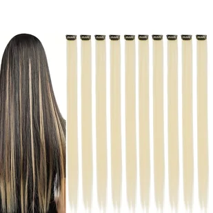 TEMU 10-pak beżowych doczepianych włosów, 20-calowe długie proste włosy syntetyczne na Halloween, imprezę modową, Boże Narodzenie, prezent noworoczny