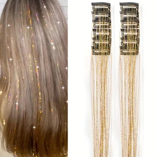 TEMU 20-calowe przedłużenia włosów na klipsy dla kobiet, 12 pakietów syntetycznych prostych pasemek z brokatowymi refleksami, modny prezent na święta
