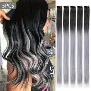 TEMU 5 szt. Syntetyczne Przedłużanie Włosów na Halloween i Boże Narodzenie, 20-calowe Czerwone, Niebieskie, Szare, Brązowe, Wielokolorowe Kolorowe