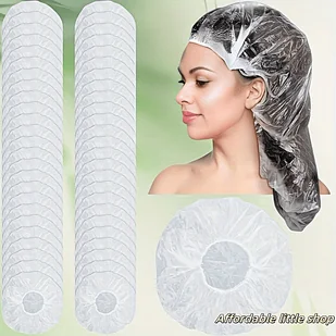 TEMU 50 szt. Duże, , jednokrotnego użytku nakładki na prysznic - białe, przezroczyste, elastyczne, odpowiednie do grubej, długiej włosów, loków,