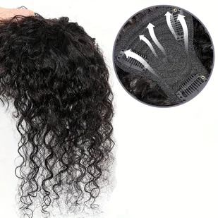 TEMU Elegancki czarny kręcony topper z grzywką: 100% ludzkich włosów Toppery dla kobiet - Wsuwane przedłużanie włosów do codziennego użytku