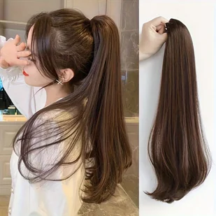TEMU Eleganckie 20-calowe Przedłużenie Kucyka na Spinkę dla Kobiet - Proste Syntetyczne Włosy, Wszechstronne i Naturalny Wygląd