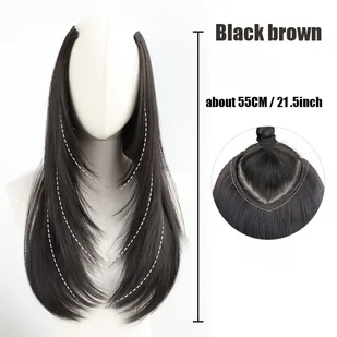 TEMU Eleganckie Damskie Przedłużanie Włosów na Klipsy - Gładkie, Proste Czarne Włosy z Dekoracyjnymi Perłami, Włókno Odporności na Wysoką Temperaturę