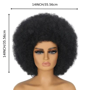 TEMU Peruka Afro z Lat 70-tych o Kręconych Włosach - Miękka i Naturalnie Wyglądająca Syntetyczna Peruka, Objętościowa i Puszysta Czarna Afro dla