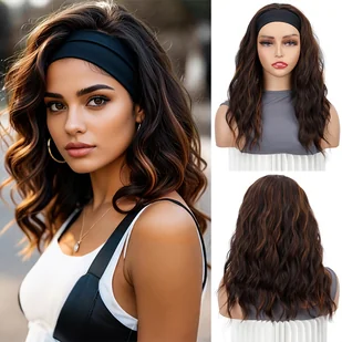 TEMU Peruka z Regulowaną Opaską Bez Kleju - Krótki Falowany Ramion, Kręcone Syntetyczne Włosy, bez Użycia Kleju na Co Dzień, Imprezy i Wydarzenia,