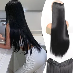 TEMU Włosy syntetyczne do przedłużania włosów prostych dla kobiet - 28 cali, 4 klipsy, odporność na ciepło, naturalny wygląd, brak rozdwojonych