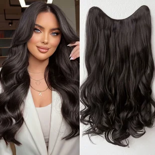 TEMU YUSULAXI 24-calowe wklęsłe przedłużenia włosów w kształcie litery V, unisex-dorosły, długie falowane kręcone, ombre czarno-brązowe, syntetyczny