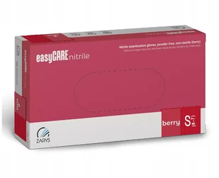 Rękawice diagnostyczne, nitrylowe, bezpudrowe, niesterylne (malinowe) Zarys easyCARE nitrile Nitrile examination gloves, powder-free, non-sterile (berry) stanowią wyrób medyczny. Rozmiar S. Mają malinowy kolor. Pasują na lewą i prawą dłoń, teksturowane na końcach palców. Stanowią barierę dla transmisji mikroorganizmów pomiędzy operatorem a pacjentem oraz minimalizują ryzyko zakażeń krzyżowych. Zarys Easycare Nitrile, rękawice nitrylowe: