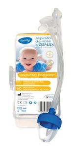 Aspirator SANITY "Nosalek" to przyrząd, który udrażnia drogi oddechowe u niemowląt i małych dzieci poprzez usuwanie z nosa wydzieliny kataralnej. Wykonanie zabiegu ułatwia oddychanie i może skracać okres stanu zapalnego oraz zapobiegać ewentualnym powikłaniom. Kształt końcówki aspiratora chroni błonę śluzową nosa, zapobiegając jej uszkodzeniu, nawet gdy dziecko wykona nagły ruch. Dzięki aspiratorom SANITY wydzielina z nosa usuwana jest szybko, łatwo i całkowicie. Aspirator nie wymaga użycia wymiennych filtrów.