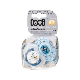 LOVI DYNAMICZY SMOCZEK USPOKAJAJCY INDIAN SUMMER 0-3 M-CEWskazania: Dynamiczny smoczek uspokajajcy Indian Summer marki Lovi adresowany jest dla niemowlt w wieku 0-3 miesice. Z uwagi na niebieski kolor zazwyczaj wybierany jest jako smoczek dla chopcw. Smoczek tobezpieczne wsparcie dla odruchu ssania oraz rozwoju mowy i zgryzu. Waciwoci: Dynamiczny smoczek uspokajajcy Indian Summer marki Lovi zosta stworzony przy wsppracy lekarzy i neurologopedw.