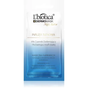 Maseczka naprawcza Night Active Eksfoliacja zawiera 3% Kwasu Migdałowego, który w łagodny i bezpieczny sposób pobudza odnowę komórkową skóry. Wygładza strukturę skórę i poprawia jej koloryt. W efekcie wielkość porów i zmiany potrądzikowe zostają zredukowane. Przeciwstarzeniowe działanie receptury potęguje zawartość aż 2% Ellagi-C, precyzyjnego składnika aktywnego. Ellagi-C zwiększa stężenie czystej witaminy C w fibroblastach uczestniczącej w syntezie kolagenu. Widocznie redukuje istniejące zmarszczki. Szlachetna esencja z Trufli Białej sprawia, że po zabiegu skóra odzyskuje aksamitną gładkość i promienistość.