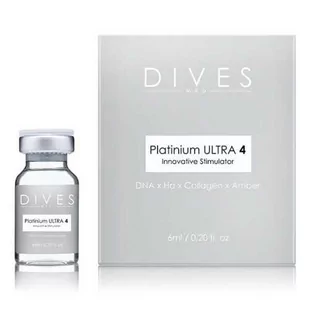 Dives Med - Platinium Ultra 4 1x6ml Innowacyjny stymulator tkankowy z kwasem bursztynowym, kwasem hialuronowym, kolagenem i polinukleotydami. Unikatowe połączenie kwasu bursztynowego, niskoczęstoczkowego kwasu hialuronowego, polinukleotydów oraz kolagenu sprawia, że wykazuje on spektakularne działanie odmładzające i rekonstruujące tkanki, stając się tym samym najsilniejszym koktajlem zabiegowym w swojej dziedzinie. Zaawansowana formuła preparatu została skonstruowana do natychmiastowej poprawy jędrności, napięcia, redukcji zmarszczek i biologicznego odmłodzenia skóry. 4w1 Koktajl łączy w sobie aż 4 substancje aktywne - kwas bursztynowy, kwas hialuronowy, kolagen oraz polinukleotydy, które czynią go numerem 1 wśród preparatów biostymulujących. Skład/ Działanie Kwas hialuronowy o wyselekcjonowanej długości łańcucha i niskiej wadze molekularnej dogłębnie nawilża i odbudowuje tkanki oraz poprawia jakość macierzy zewnątrzkomórkowej, gwarantując intensyfikację procesów fizjologicznej odbudowy tkanek.