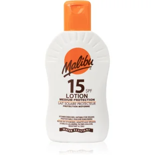 Malibu Protective Lotion SPF15 Wodoodporny Balsam 200ml Balsamy przeciwsłoneczne Malibu są wodoodporne, łatwo się rozprowadzają i szybko wchłaniają. To doskonała ochrona przed naturalnym słońcem, a przy tym fantastyczna pielęgnacja skóry. Wysoka ochrona Filtry UVA/UVB Fotostabilny Łagodny dla skóry o klinicznie udowodnionym działaniu Zawiera witaminę E i Aloe Vera Wodoodporny Testowany tylko na ludziach Wyprodukowany w Anglii Sposób użycia: Stosuj 30 minut przed i często podczas ekspozycji na słońce. Upewnij się, że cała odsłonięta skóra jest równomiernie i obficie pokryta balsamem.