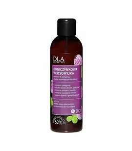 Szampon do włosów wypadających dla kobiet Koniczynkowa włosomyjka oczyszcza i pielęgnuje skórę głowy i włosy - dzięki naturalnym, łagodnym substancjom myjących m.in. mydlnicy. Dodatkowo dzięki połączeniu ziół kozieradki, tataraka i koniczyny czerwonej szampon pobudza wzrost włosów ,,baby hair", wzmacnia i odżywia włosy oraz zmniejsza wypadanie włosów. Ponadto szampon nawilża skórę głowy i włosy a także zwiększa gęstość i grubość włosów.