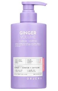 Odkryj wzmacniający szampon Orjena Ginger VolumeOrjena Ginger Volume to szampon wzbogacony ekstraktem z imbiru i kofeiną, który delikatnie oczyszcza skórę głowy i włosy, wzmacnia cebulki oraz dodaje objętości. Formuła bogata w proteiny roślinne i fermentowane ekstrakty pomaga odżywić i nawilżyć włosy, nadając im zdrowy wygląd i lekkość. Składniki aktywne, które zadbają o Twoje włosy: Ekstrakt z imbiru (Zingiber Officinale Root Extract): pobudza mikrokrążenie skóry głowy, wzmacnia cebulki i stymul